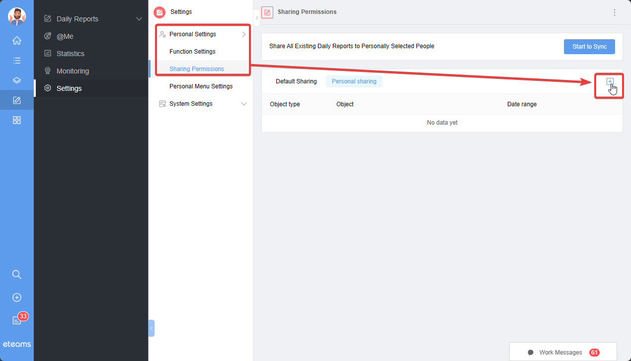 Click on "Start to Sync" to update sharing settings for existing daily reports.